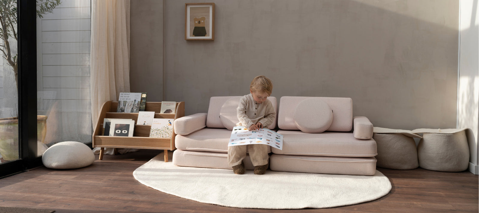 Twoja sofa przyjdzie zrolowana jak materac w jednym pudełku. Rozpakuj ją jak najszybciej i zacznij używać od razu. Im więcej będziesz skakać i bawić się na niej, tym szybciej pianka się rozszerzy, a materiał wygładzi. Każdy rodzaj tkaniny może potrzebować innego czasu na całkowite usunięcie zagnieceń, ale bądź cierpliwy – Twoja sofa w końcu będzie wyglądać dokładnie tak, jak na zdjęciach.